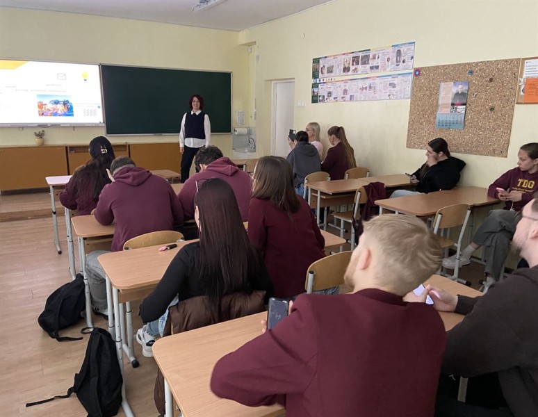 Balandžio 28 d. Telšių „Džiugo“ gimnazijoje bibliotekos darbuotojai Jolita Maščinskienė ir Edvardas Grušas dvyliktokus supažindino su autorių teisių pagrindais.