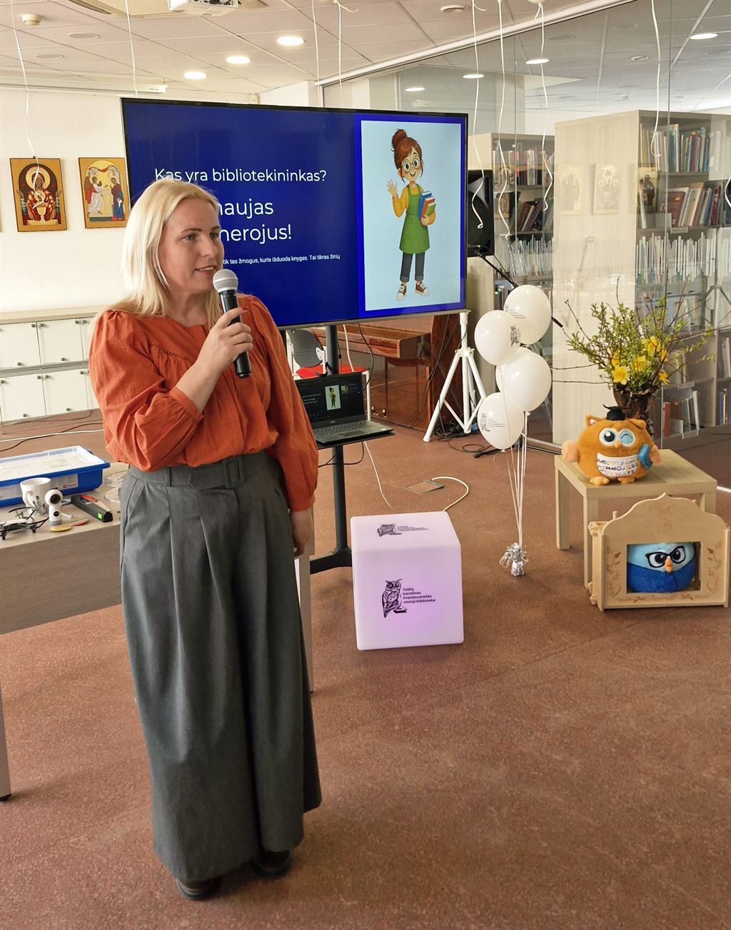 Sveikinimo žodžius tarė bibliotekos direktorė Jolanta Zubienė. Profesijos subtilybes įdomiai ir įtraukiai pristatė skyriaus vedėja Monika Lukoševičienė. Vėliau vaikai, suskirstyti į tris komandas, leidosi į nuotaikingas rungtis: viena komanda kūrė ateities biblioteką iš magnetinių kubų, kita – ieškojo knygų bibliotekos fonduose, o trečioji konstravo robotą-bitę – ateities bibliotekininką.