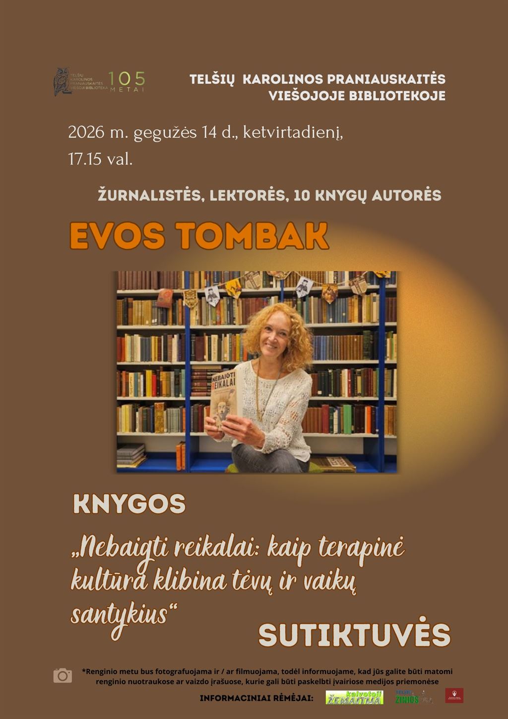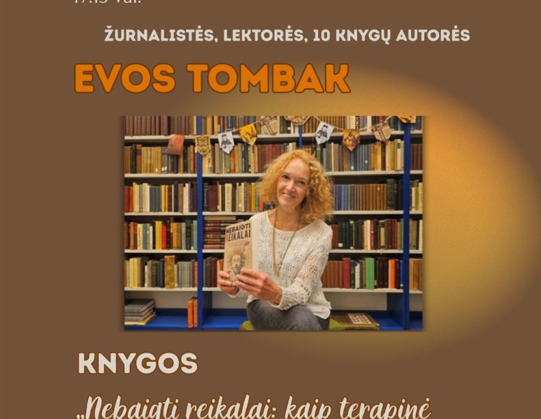 RENGINYS: žurnalistės, lektorės, 10 knygų autorės Evos Tombak knygos „Nebaigti reikalai: kaip terapinė kultūra klibina tėvų ir vaikų santykius“ sutiktuvės.