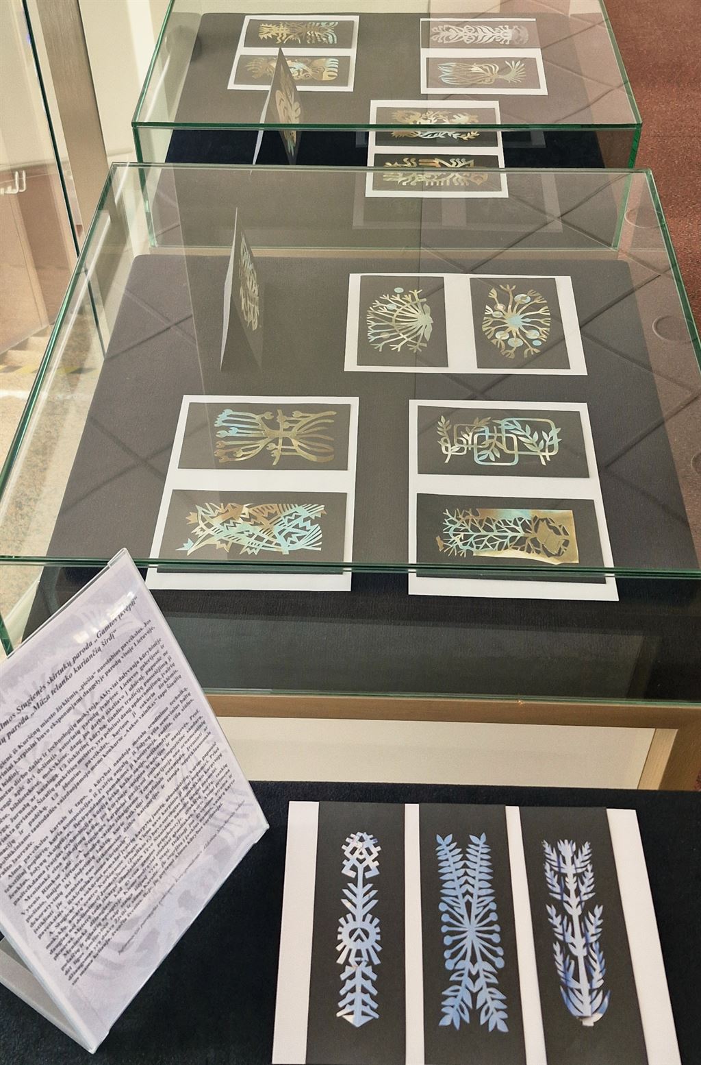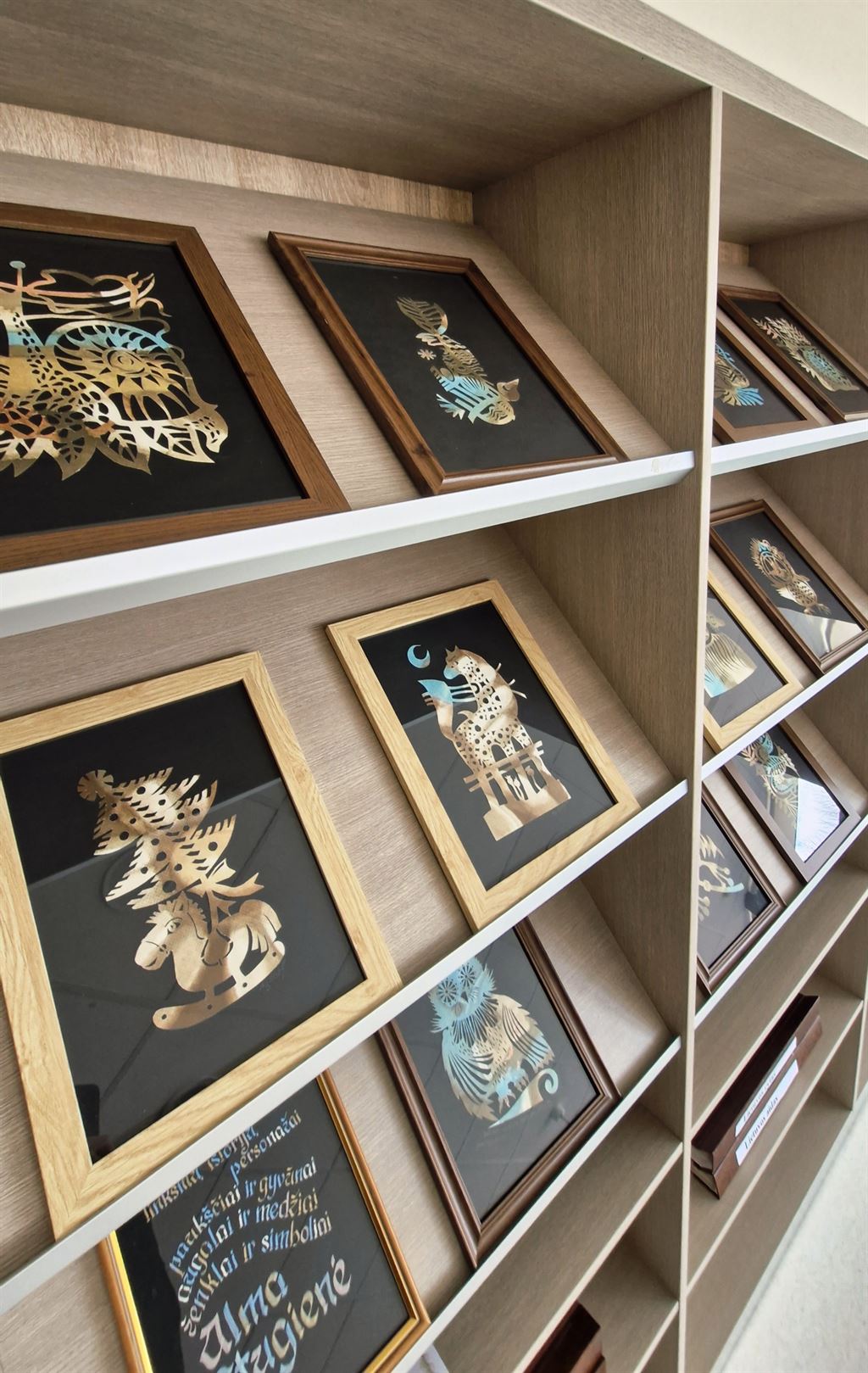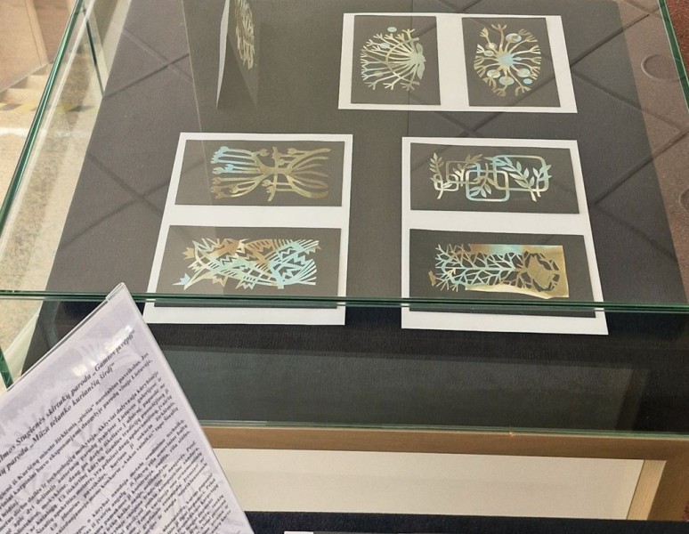 Bibliotekoje iki gegužės 9 d. eksponuojamos tautodailininkės Almos Stugienės darbų parodos: skirtukų „Gamtos įkvėpti“ ir karpinių „Mūza telanko kuriančią širdį“.