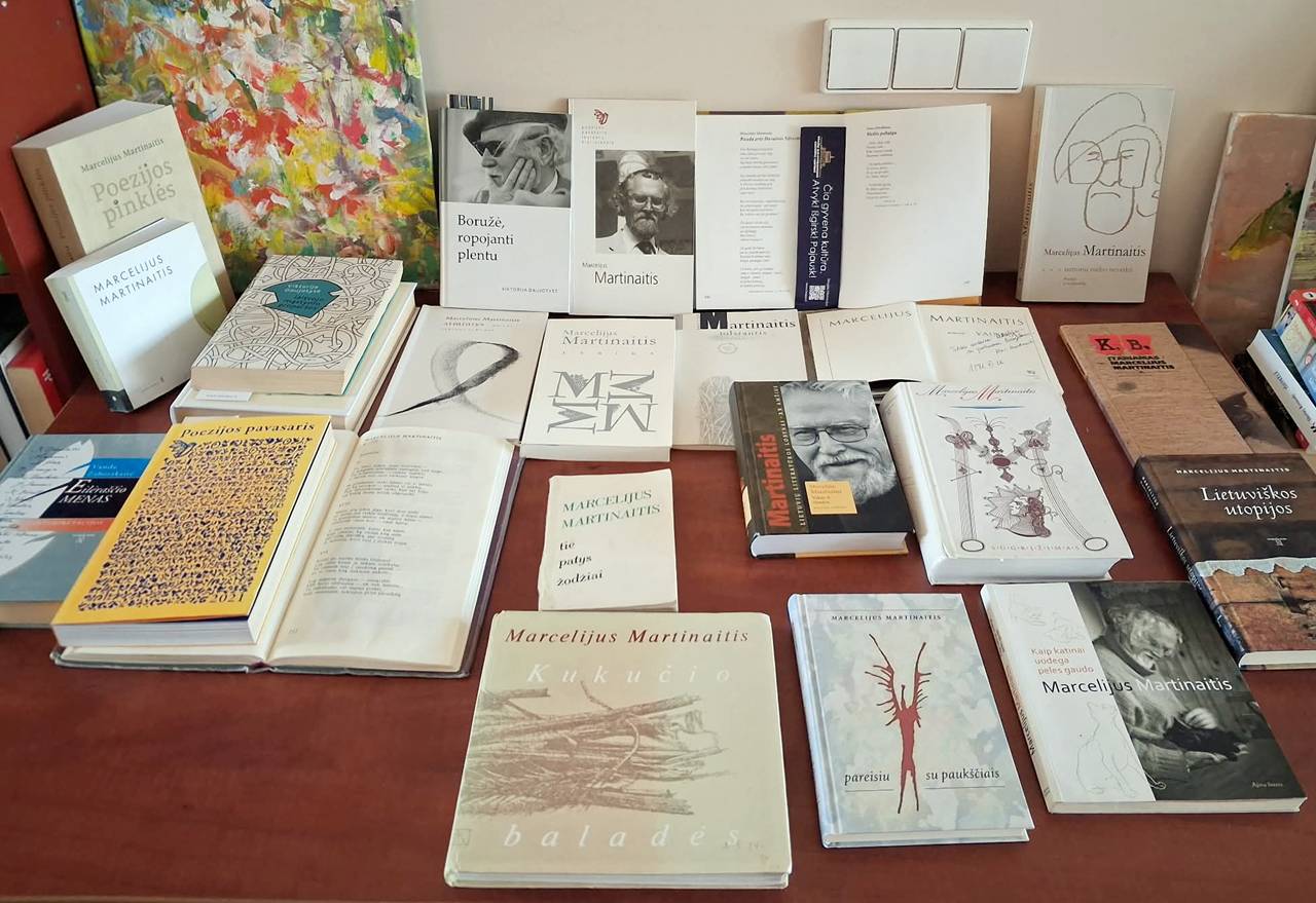 Parodoje skaitytojų laukia Marcelijaus Martinaičio knygos – iš viso net 12 eilėraščių knygų, poezijos slėpinių knyga ,,Poezijos pinklės‘‘, sudarytojas Antanas Rybelis; ,,Lietuviškos utopijos‘‘, dialogai, pokalbiai, interviu ir straipsniai – tokie rankraščiai... Be abejo, apie katinų meilę ir ištikimybę - ,,Kaip katinai uodega peles gaudo‘‘ – ir žinoma, išminties iš literatūros mokslo apie Marcelijų Martinaitį: V. Daujotytės, K. Urbos, V. Zaborskaitės leidinių. Belieka atsiversti ir stebėti, kas yra, buvo ir bus – galbūt ir iš ,,Vakar ir visados‘‘... O juk ,,Taip mėlyna, tarsi žiūrėtų linksmi žibuokliautojai,/ vis regintys mėlynus miško takus.‘‘ Pavasaris!