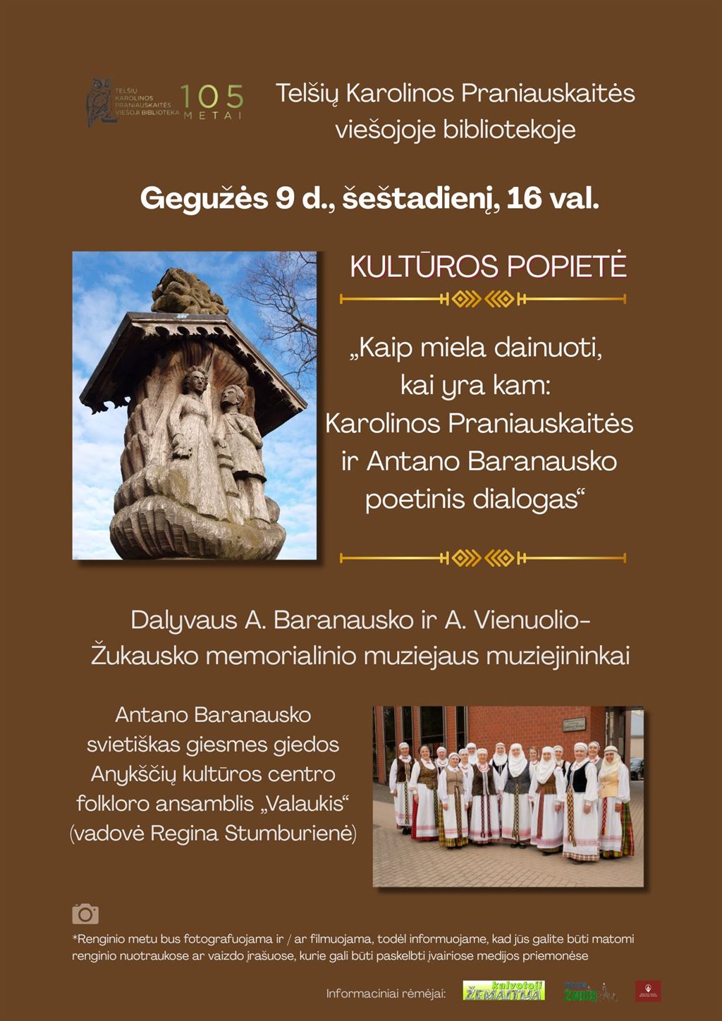 RENGINYS: kultūros popietė „Kaip miela dainuoti, kai yra kam: Karolinos Praniauskaitės ir Antano Baranausko poetinis dialogas“